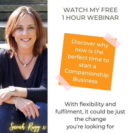 Don't worry there's no participation. Just grab a cuppa and a pen, sit back and find out if switching careers to start your own Companionship Business is right for you. Plus I'll share a really special webinar discount offer with you at the end.